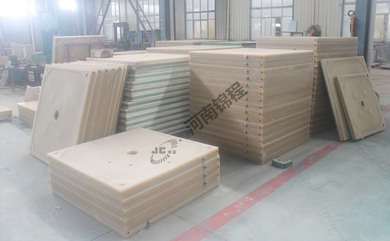 濾板全部為數(shù)控加工中心加工,其精度高出標準數(shù)倍,高于德國DIN標準的兩倍,濾板生產(chǎn)中由于外界溫度的不同而產(chǎn)生不同的收縮,至使濾板的外形尺寸誤差高可達3mm,景津?qū)λ袨V板外框四面全部經(jīng)過加工并做腔室表面熱融處理,消除加工中的毛刺,提高了表面光潔度,大大延長了濾布的使用壽命,此項成本約增加每塊八十元,與按我國行業(yè)標準生產(chǎn)的濾板相比:過濾速度提高20%;密度、強度、抗疲勞度、抗老化程度提高一倍,其使用壽命可達10年以上。濾板進料壓力為1.6MPa。耐高溫高壓、防腐密封好、過濾周期短、沖洗效果好、濾餅含濕率低。