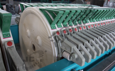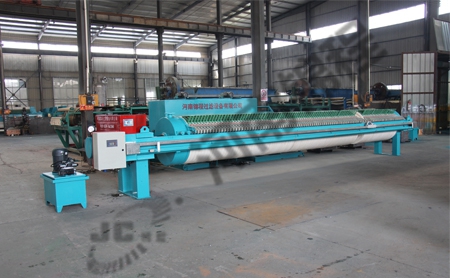 圓形壓濾機(jī)的構(gòu)成部分主要有機(jī)架,止推板,壓緊板,大梁,濾布,濾框等