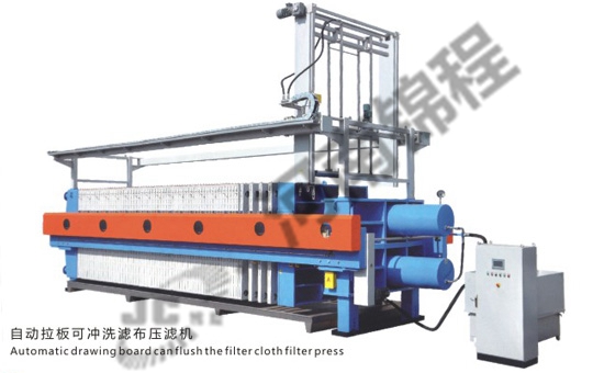 自動拉板可沖洗濾布壓濾機實現自動拉板、自動沖洗濾布,一體化解決了濾布沖洗困難、經常更換濾布等問題,同時節(jié)約了人工、節(jié)約了水資源、縮短了濾布的沖洗時間,使濾布透水性更強、提高了過濾速度,延長了濾布的使用壽命。
